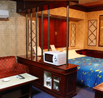 一戸建てタイプの個室、セパレートタイプのホテルで、駐車場から直に入室できます。